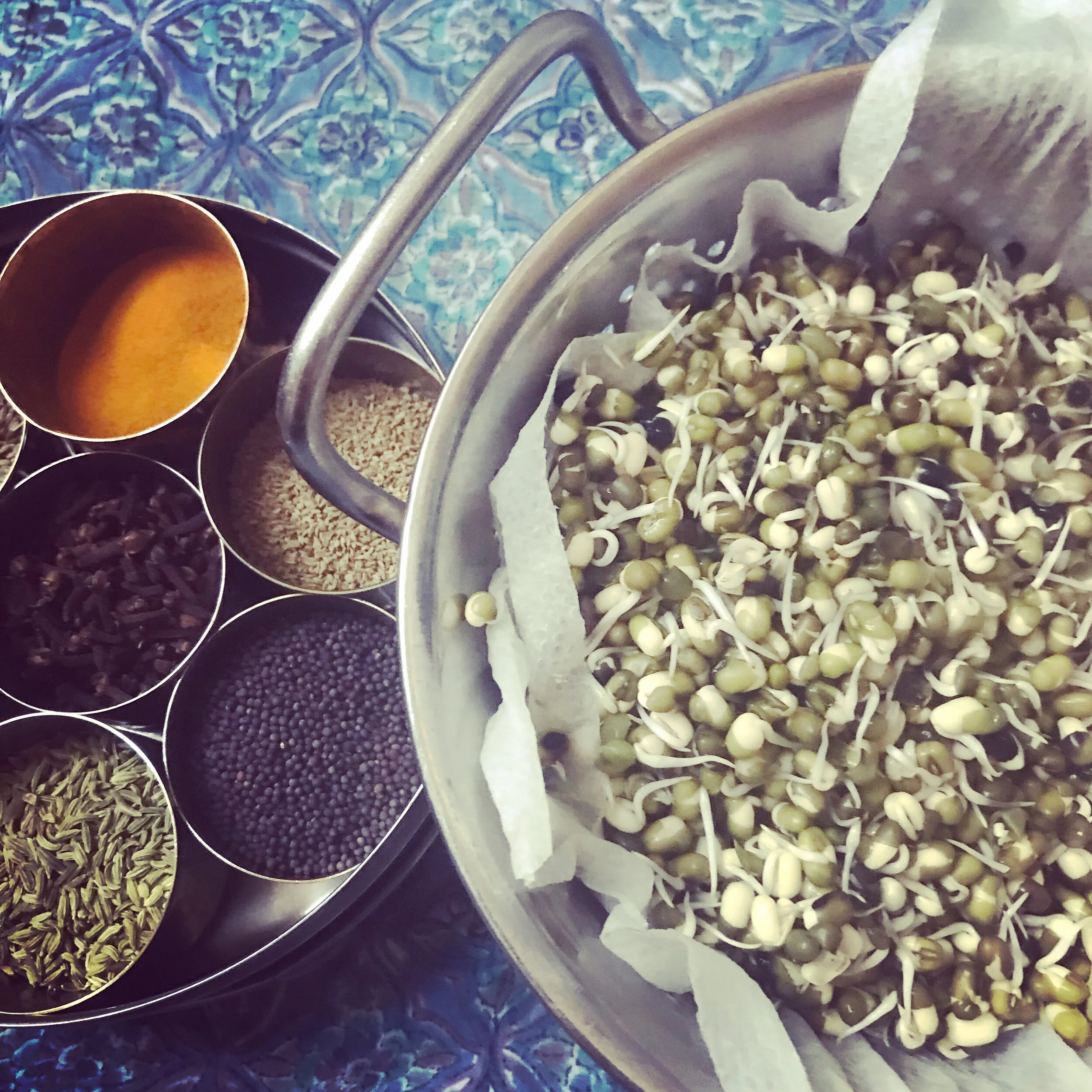 Mung is sweet, light, and cleansing. When husked and split, inside the whole green mung bean is the yellow mung or lentil found in the classic feel-better meal Kitchari. Soaking the whole mung beans removes its flatulence-producing compounds. Sprouting makes them light and cooling which is nice to eat in the hotter seasons. You can easily find these at an international or health foods store.